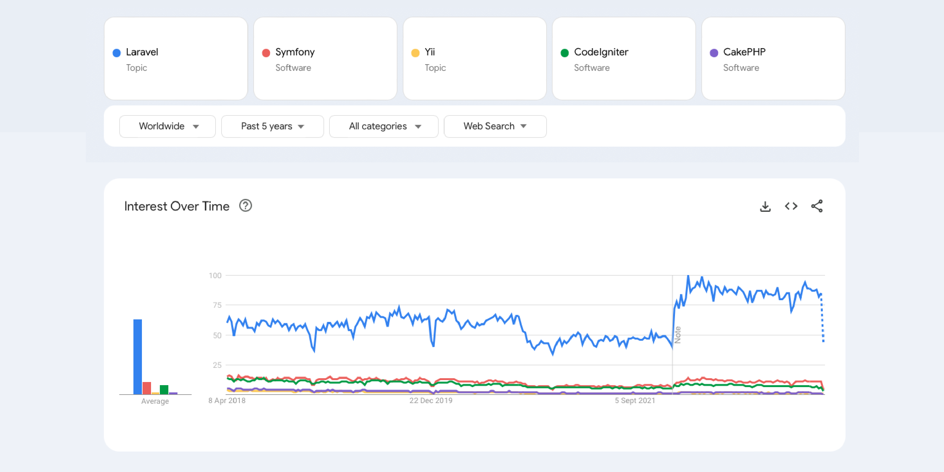 As per the data received from Google Trends, Laravel has been one of the most used web frameworks for the past 5 years.